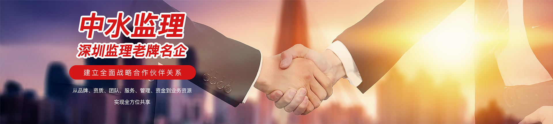 2023年中水監理與深圳老牌名企建立起全面戰略合作伙伴關系:雙方將實現從品牌、資質、團隊、服務、管理、資金和業務資源的全方位共享,中水將快速獲得深圳老牌名企25年行業經驗和積累的強力加持。在此背景下,制定了5年的兩大目標規劃